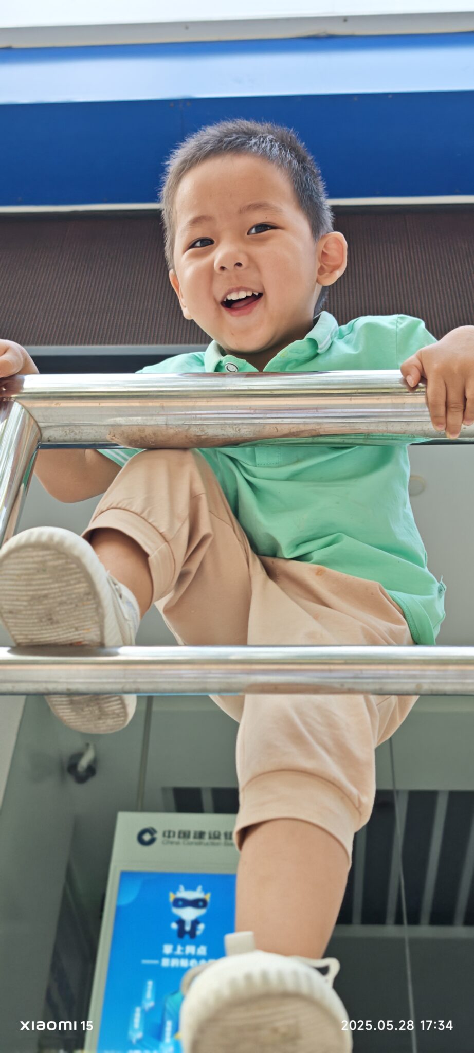陌陌放学在银行门口玩